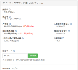 でご登録していただく事になるのですが、メルマガでご案内した通り今回は割引コードがございます。