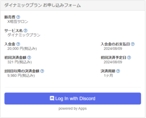 ディスコードアカウントに対しての追加フロア解放プランとなるので、利用したいディスコードアカウントでログインしていただきプランに登録です。